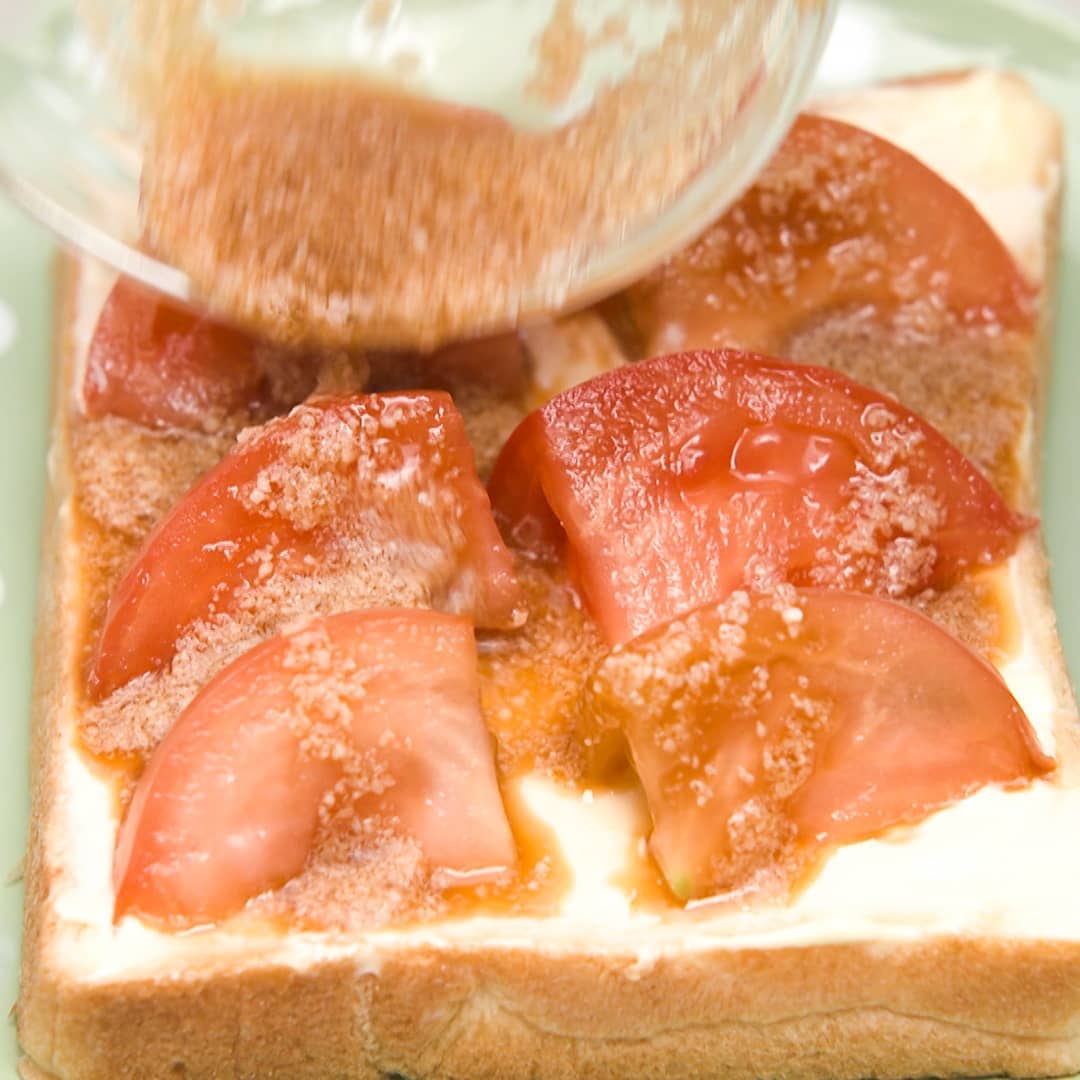 レシピ:「*.魔法にかかった.*トマトのトースト」 by ayureoさん・クックパッドよりアレンジ