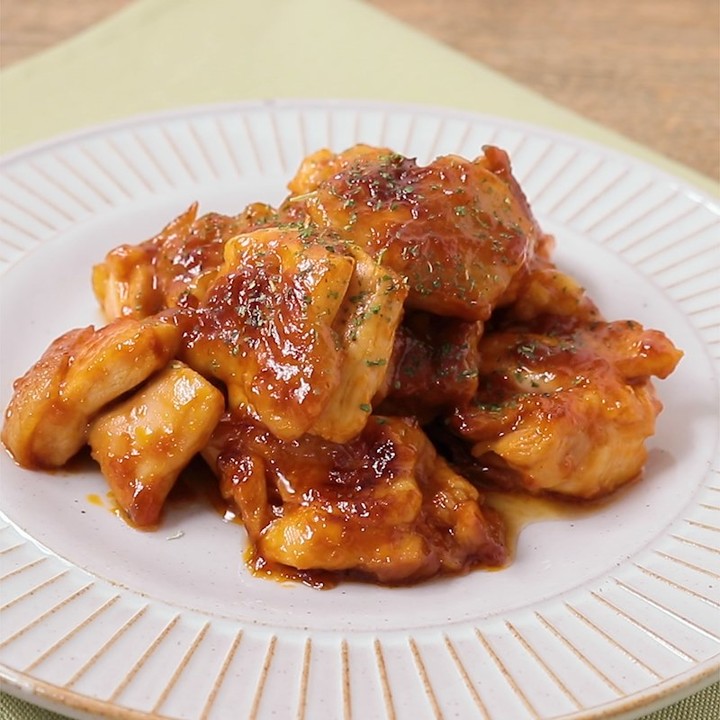 一口大に切った鶏もも肉を、ケチャップ、砂糖、マヨネーズなどの調味料と一緒に袋に入れて、しっかり揉むだけで下ごしらえは終了!あとはフライパンでサッと焼くだけなので、洗い物も少なく、手早くメインが出来上がります!
