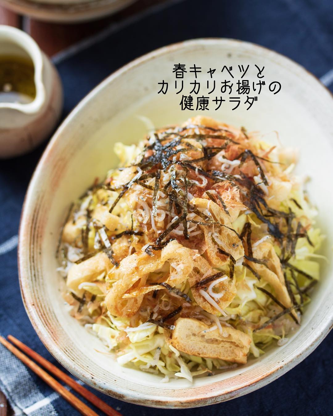 【 #春キャベツとカリカリお揚げの健康サラダ 】#やみつき #ドレッシング #黄金比率 #オール1 #サラダ #おかずサラダ