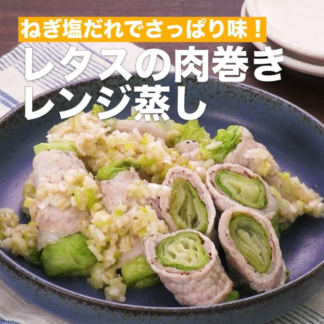 くるくる巻いたレタスを豚肉でさらに巻いてレンジで加熱するだけ!火を使わずにできる絶品おかずのご紹介です。断面のレタスの層にねぎ塩だれをからめてお召し上がりください♪