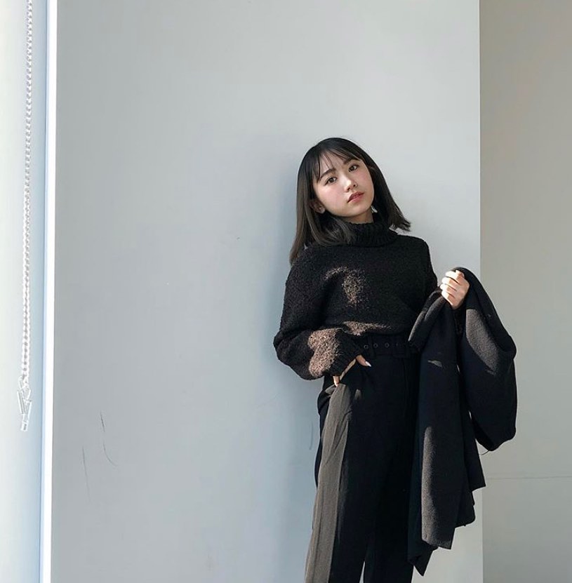 ダークブラウンのタートルネックが大人っぽい✨ブラックとの相性も、とっても良いですね😘ぽってりとした素材感だけど、厚すぎないからちょうど良い👏ちょっとお洒落してお出かけしたい時に、活躍しそうなセーターです🙌