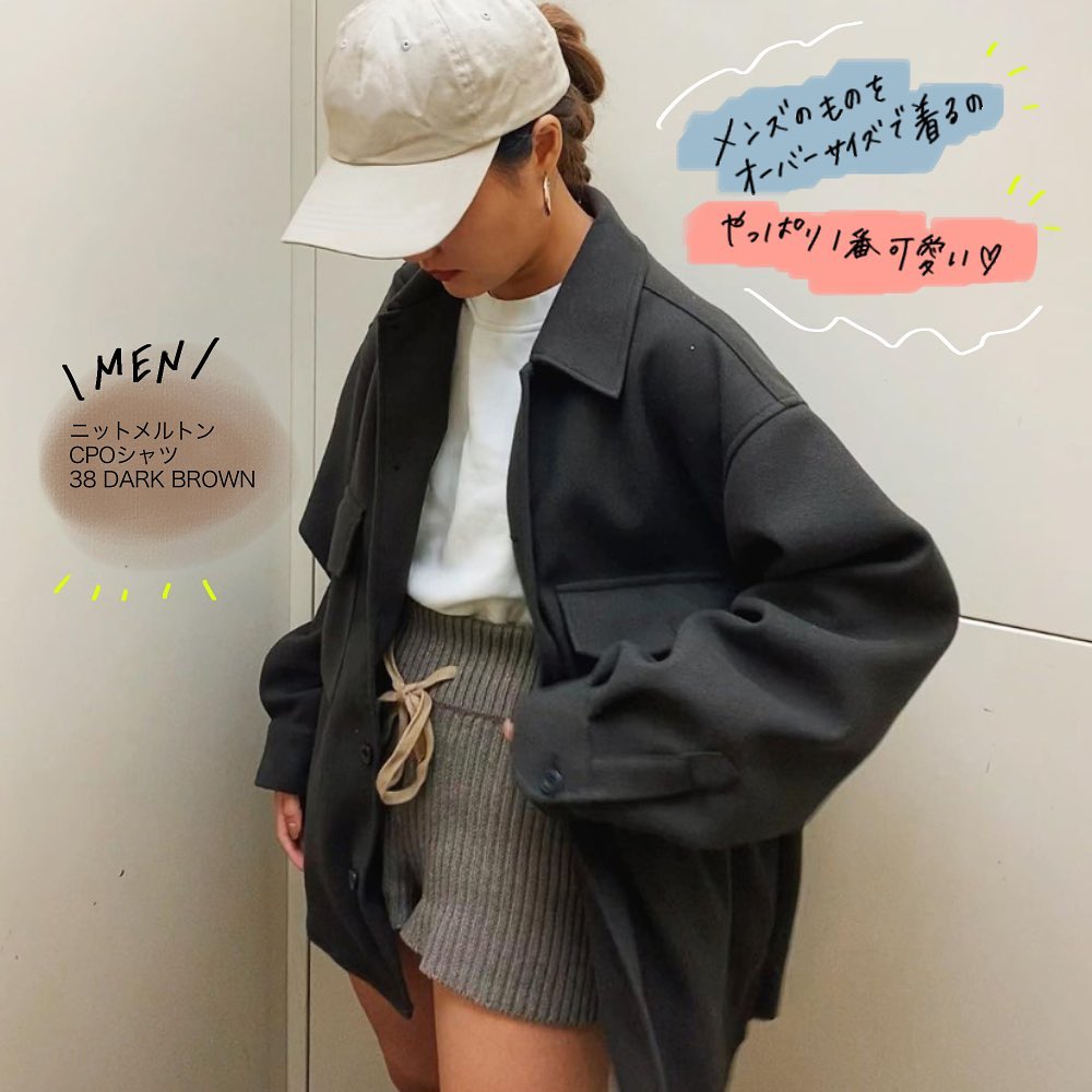 メンズライクにキメてみた!💕オーバーサイズのシルエットを、ダボっと着こなすのが今風👍ニットメルトン素材が、暖かなので🥰寒くなってきても活躍しちゃう✨メンズシャツ😘かっこよく着こなしても良し👏可愛い着こなしにも良し👌メンズのCPOシャツ🙌是非、チェックしてみてくださいね💁♀️💕