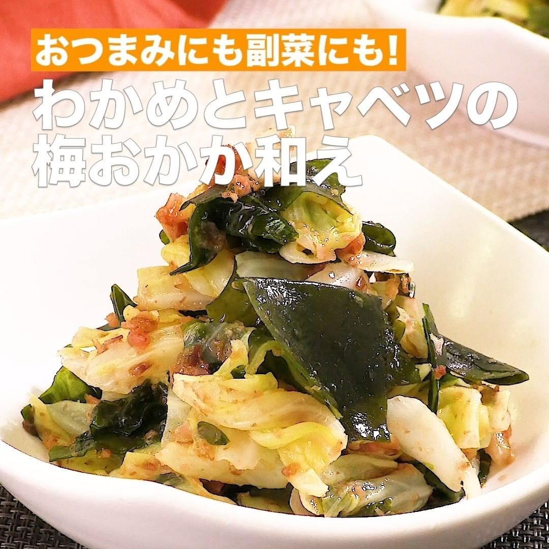 ⑤<おつまみにも副菜にも!わかめとキャベツの梅おかか和え>