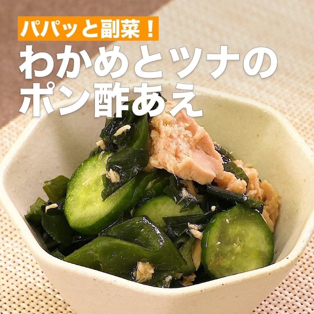 ④<パパッと副菜!わかめとツナのポン酢あえ>