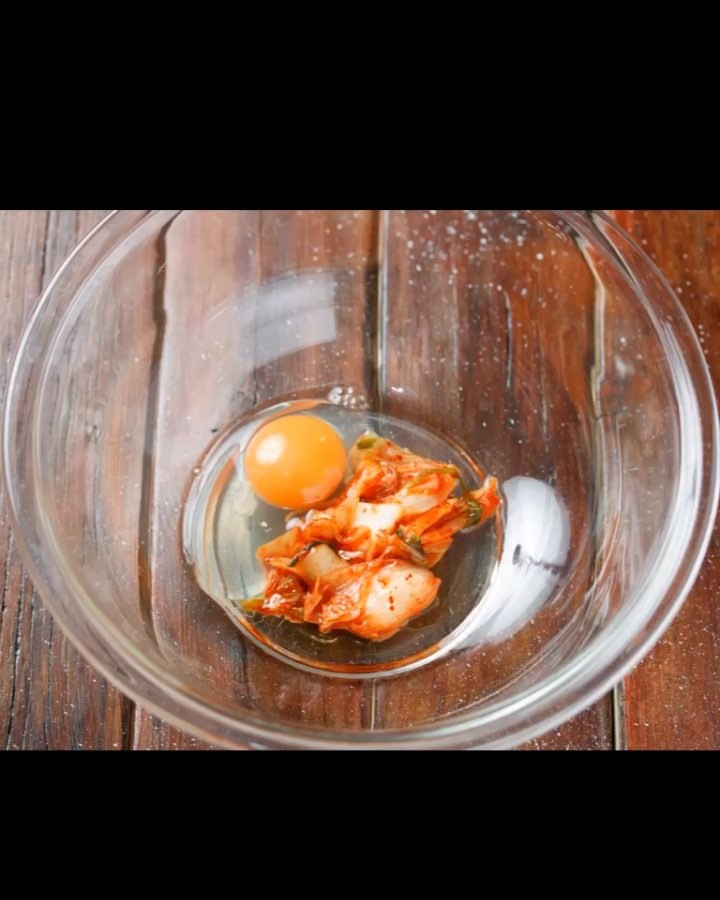 耐熱ボウルに、ご飯・卵・キムチを入れてレンジでチン✨