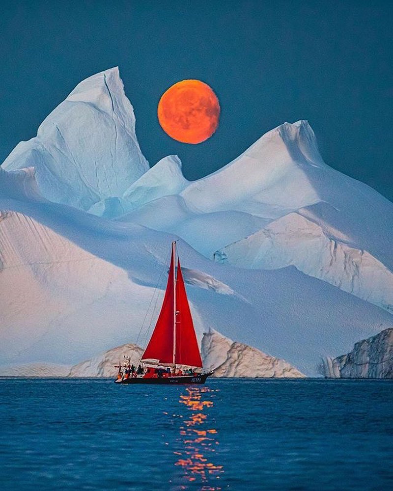 #greenland #greenlandpioneer #ilulissat #fullmoon #yacht #icebergs