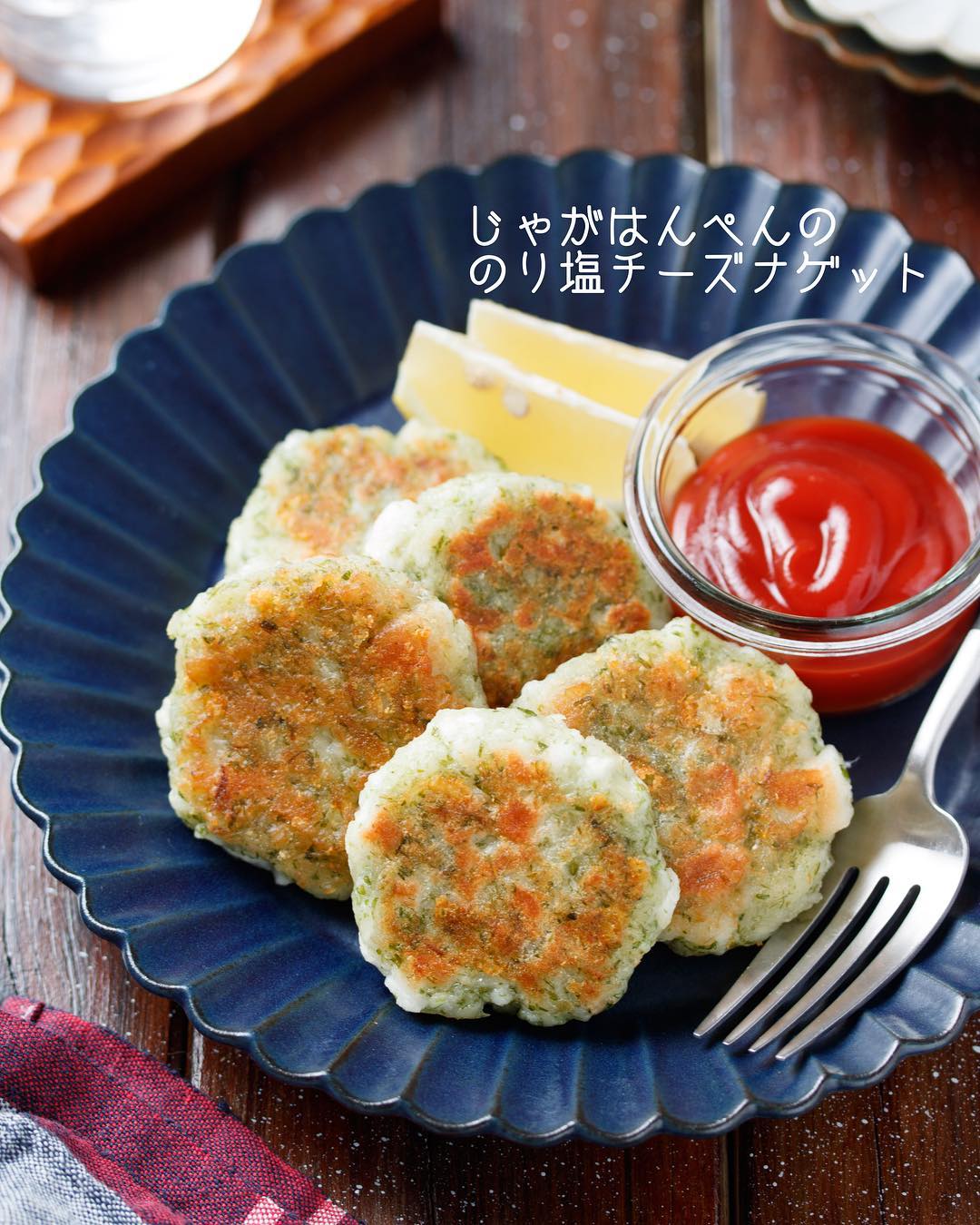 【カリモチ♡ #じゃがはんぺんののり塩チーズナゲット 】#作り置き #冷凍保存 #お弁当 #おつまみ #包丁不要 #ポリ袋 #揚げない
