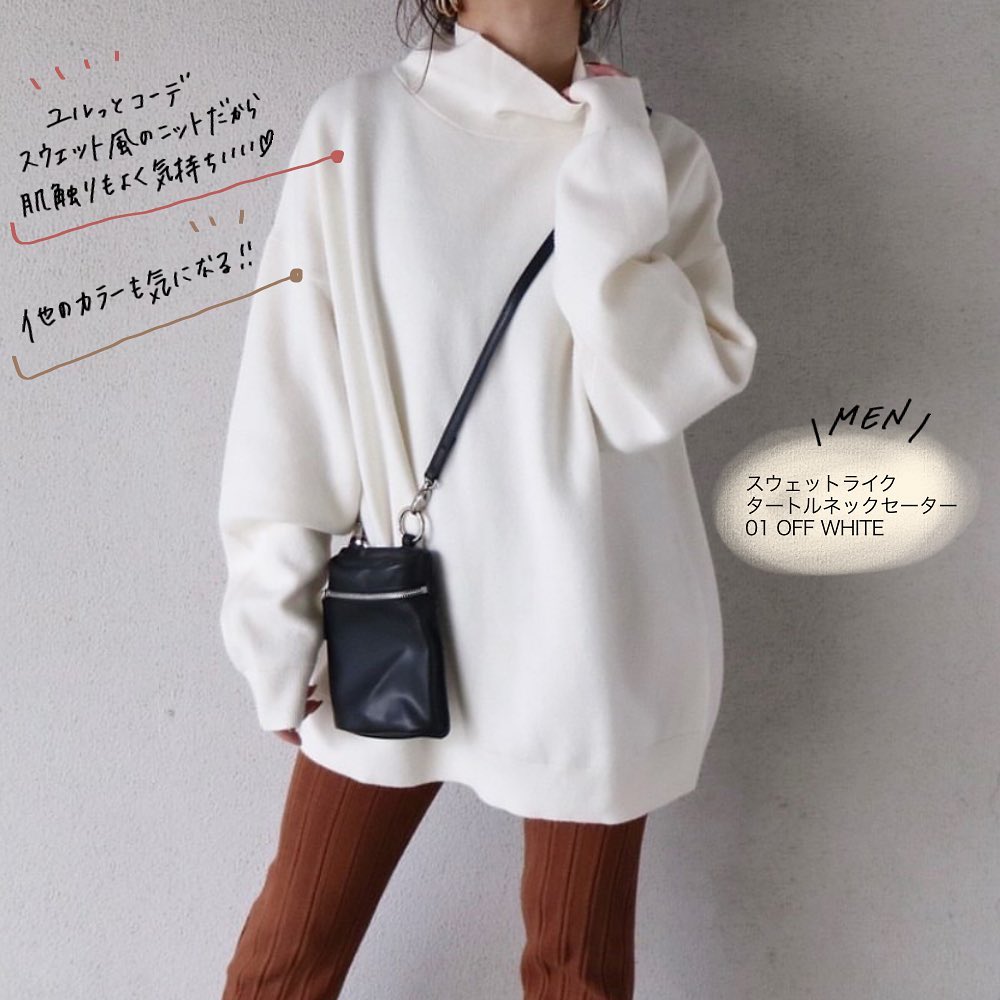 #スウェットライクタートルネックセーター #スウェットライクフーディセーター #ニット #セーター #ニットチュニック #オーバーサイズ #シンプルコーデ #デイリーコーデ #ジェンダーレスコーデ #秋コーデ #冬コーデ