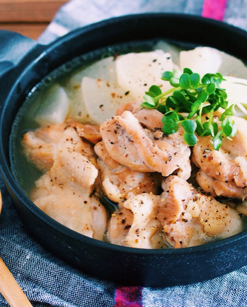 #簡単 #簡単レシピ #レシピ #節約 #時短 #時短レシピ #food #recipe #cooking #料理好きな人と繋がりたい #器好き #器 #写真好き #楽うま #おかず #自分時間 #自分磨き #鶏むね肉 #むね肉 #大根 #塩 #塩スープ #うま塩