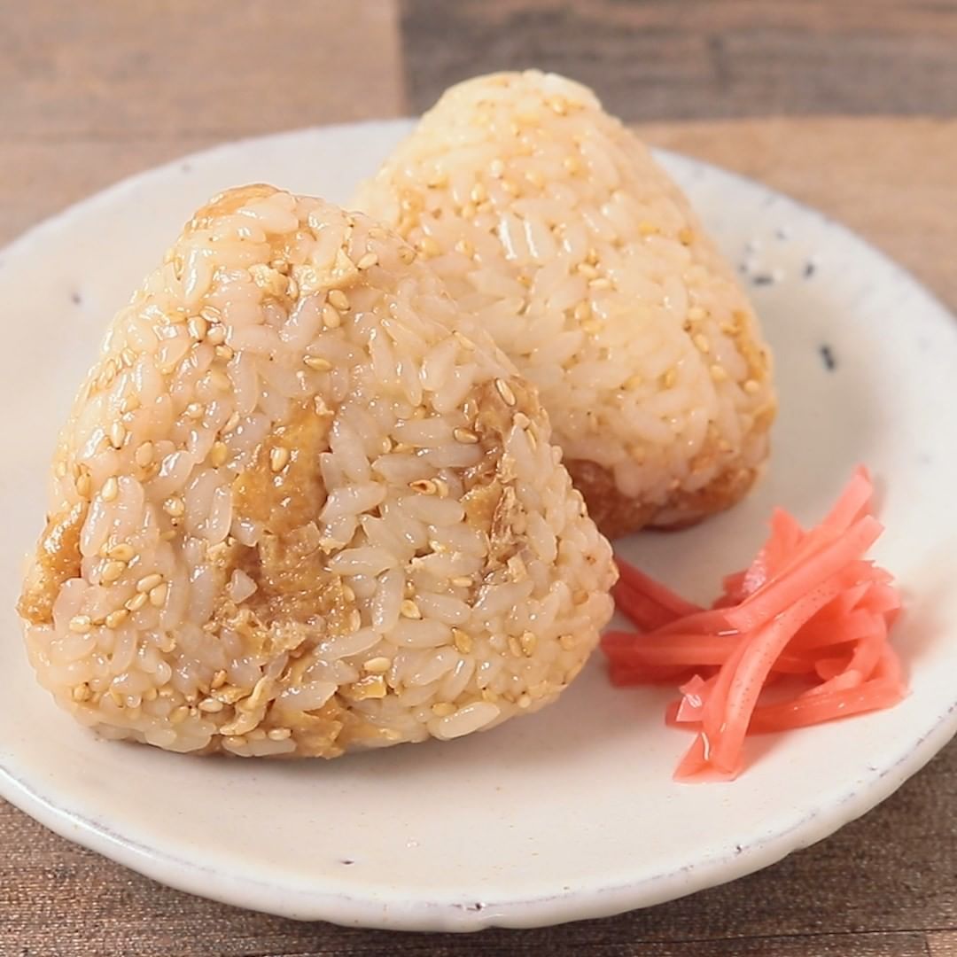 簡単、おいなりさん風おにぎりはいかがでしょうか。甘く辛く味付けした油揚げをごはんと混ぜ合わせ、おにぎりにしました。ごはんに甘辛い煮汁が染みて、とてもおいしいですよ。お弁当にもぴったりなので、ぜひお試しくださいね。 .