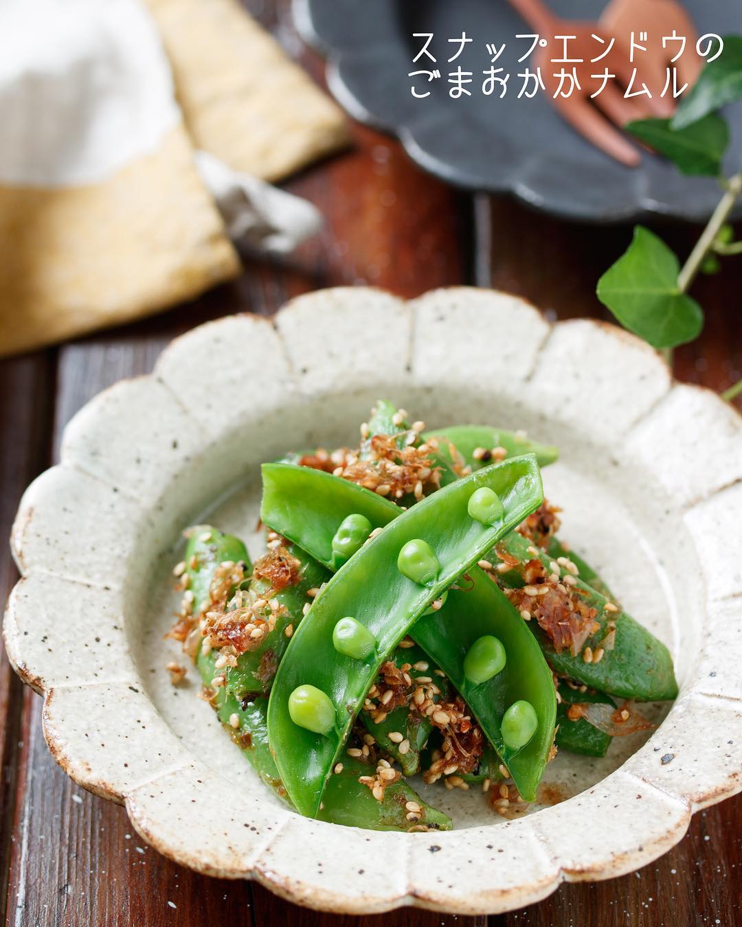 #簡単 #簡単レシピ #レシピ #節約 #時短 #時短レシピ #food #recipe #cooking #料理好きな人と繋がりたい #器好き #器 #写真好き #楽うま #おかず #自分時間 #自分磨き #スナップエンドウ #ナムル #スナップえんどう #ごま #おかか