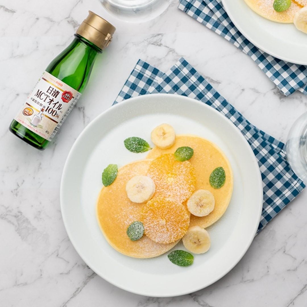 【レシピの紹介】 「MCTオイルでふわもち!米粉のフルーツパンケーキ」のレシピのご紹介です。生地に「日清MCTオイル」を加えることで、パサつきを抑え「ふわふわ」と「もちもち」の2つの食感を実現!食事系のパンケーキとしてもお召し上がりいただけますよ。冷凍保存も出来るので、忙しい朝にもピッタリ。小さじ1杯の「日清MCTオイル」で、アクティブな1日を始めませんか?ぜひ試してみてくださいね!
