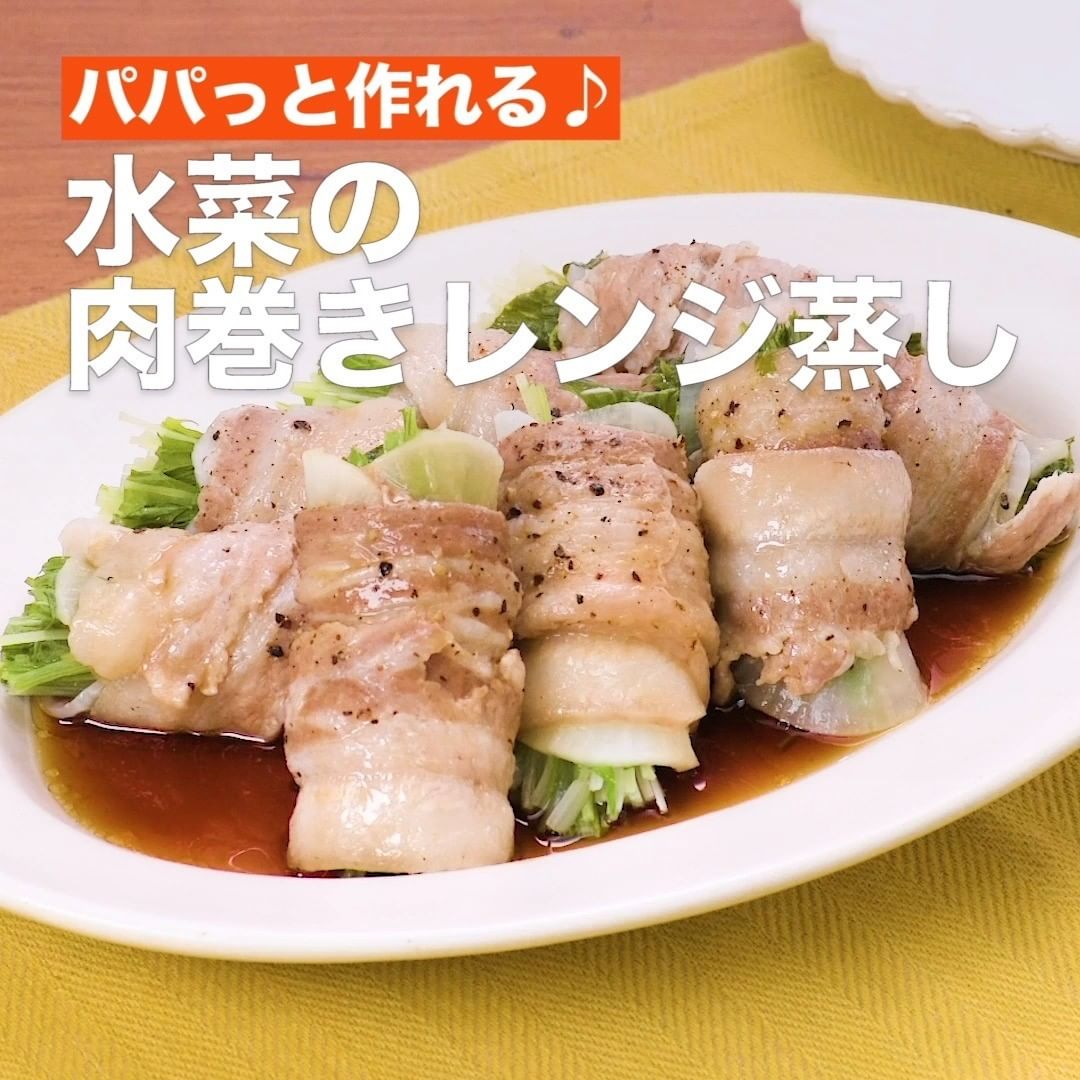 ②<パパっと作れる♪水菜の肉巻きレンジ蒸し>