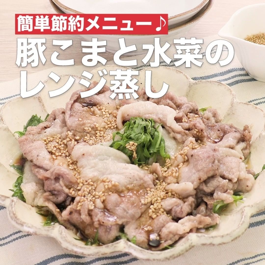 ④<簡単節約メニュー♪豚こまと水菜のレンジ蒸し>