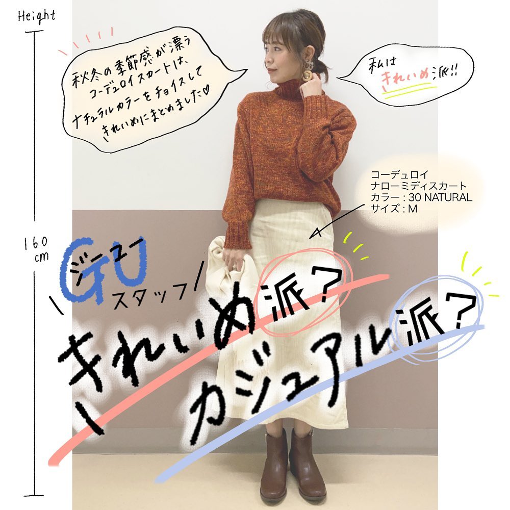 GUスタッフならではの、幅広い着こなし✨カジュアルからきれいめまで、盛り沢山でご紹介😍旬のコーデュロイ素材のナロースカートが、着心地良くて大活躍❣️パンツは、まだまだ人気継続中のフレアパンツ👌どちらも合わせ方によって、テイストが変えられるから、重宝するアイテムです😘✨ 秋冬もコーデを楽しみたい人、必見!ぜひ、チェックしてみてくださいね💁♀️💕