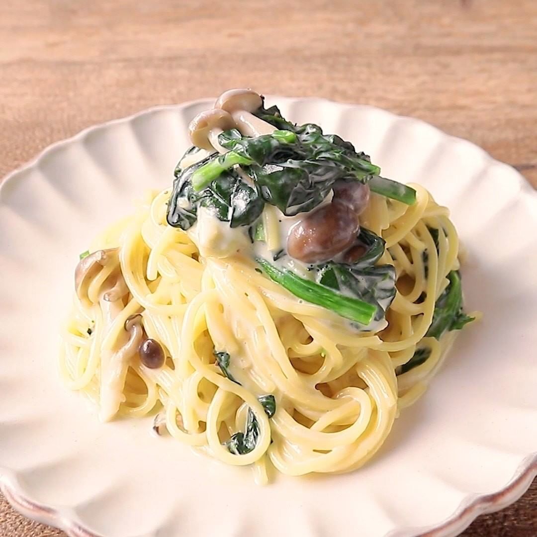 ②『たっぷりほうれん草としめじのクリームスパゲティ』