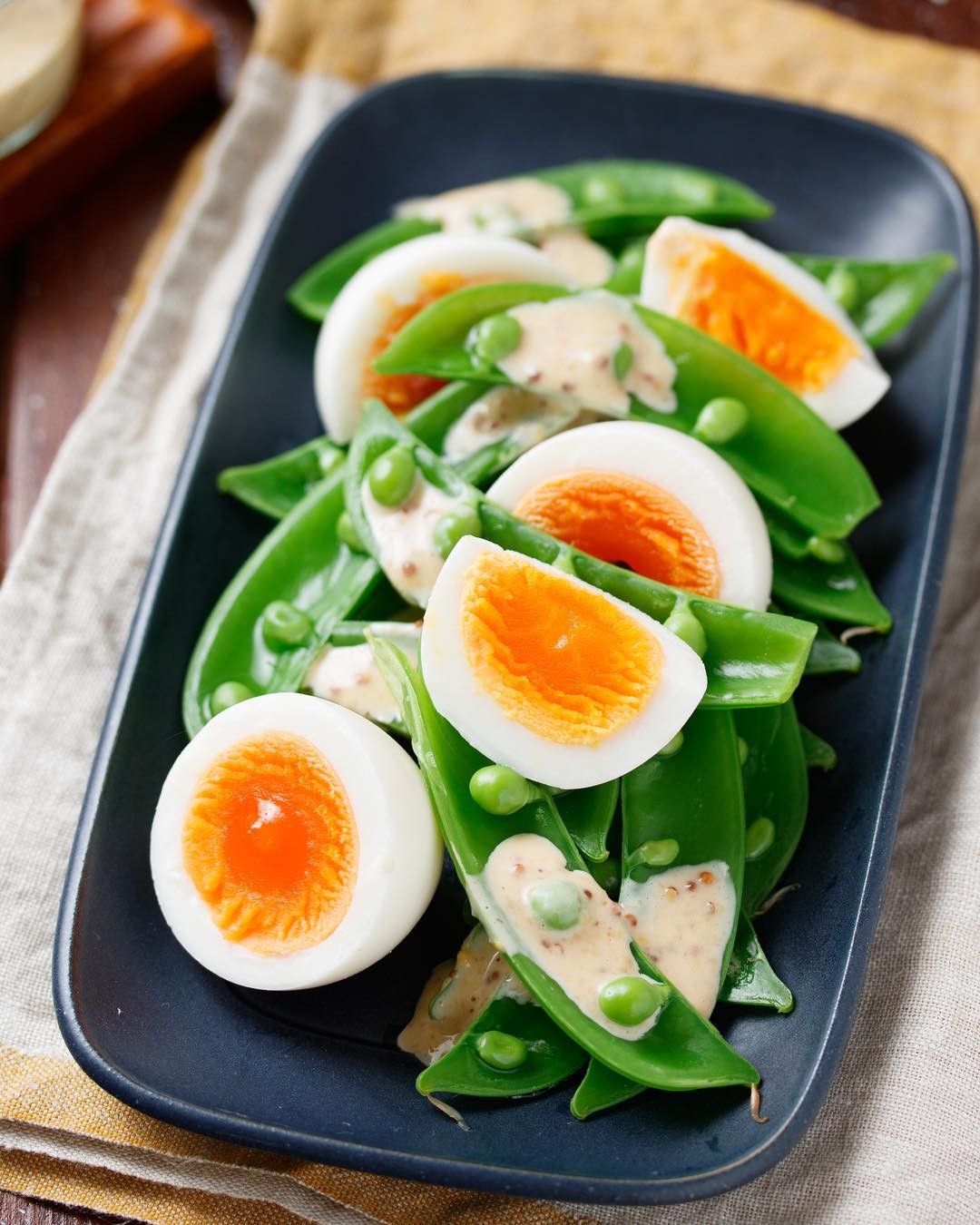 #簡単 #簡単レシピ #レシピ #節約 #時短 #時短レシピ #food #recipe #cooking #料理好きな人と繋がりたい #器好き #器 #写真好き #楽うま #おかず #自分時間 #自分磨き #スナップエンドウ #スナップえんどう #卵 #ゆで卵 #デリ風 #サラダ #ごまマヨ #ドレッシング