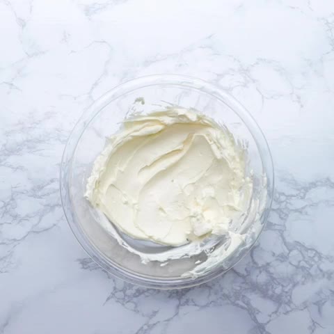 3.ボウルにクリームチーズ、マスカルポーネを入れ、ゴムベラでなめらかになるまで練り混ぜる。⁣