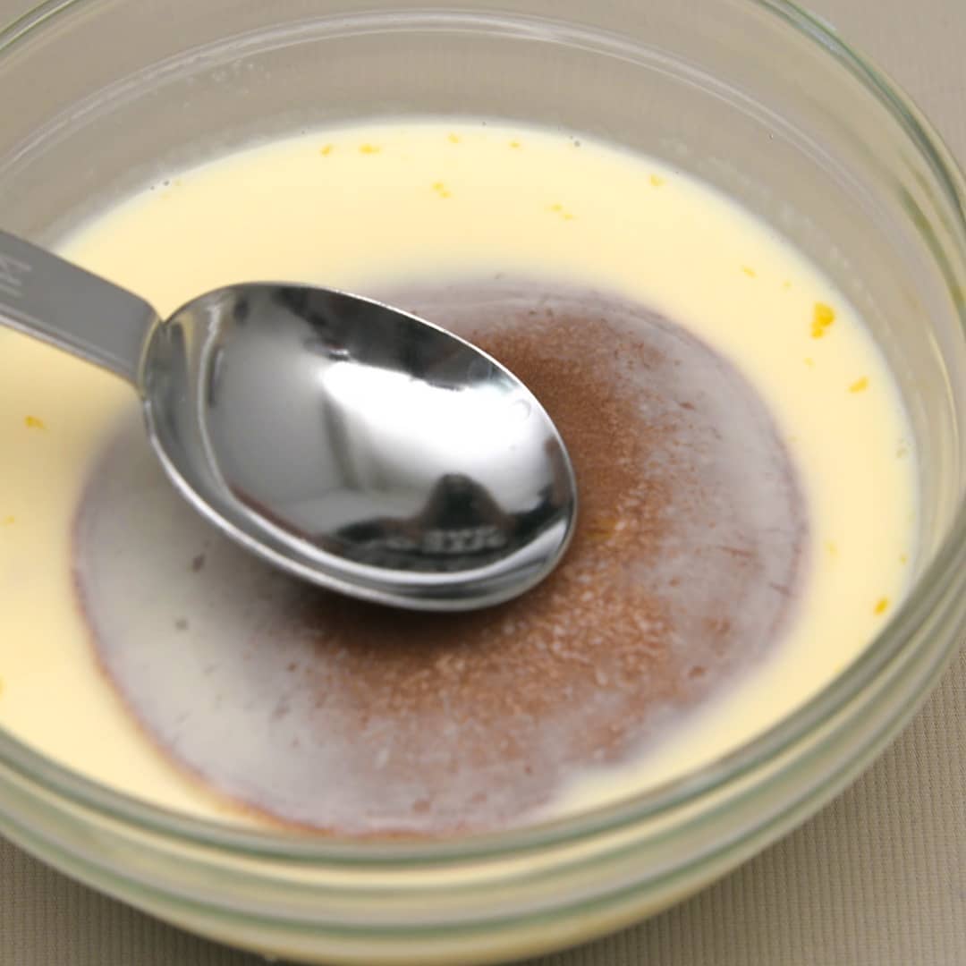①ボウルに卵(1個)牛乳(100ml) 砂糖(小さじ1)を入れ滑らかになるまで混ぜ合わせる