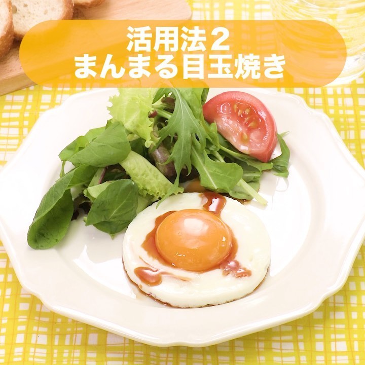 型を使うことでまんまるの目玉焼きが作れます💛ハンバーグの上などにのせたり、ハンバーガーにはさむのもおすすめです!