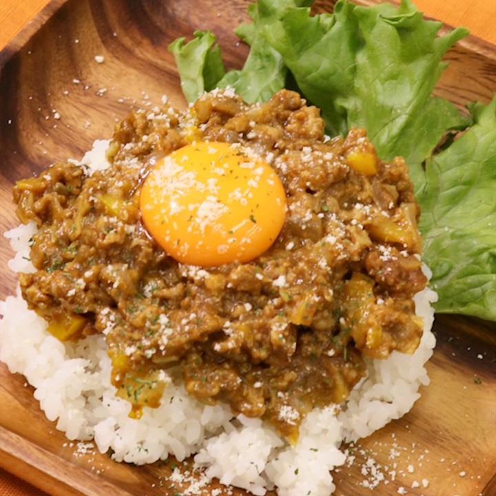 キーマカレーは鶏ひき肉を使用しますが、ない場合は合挽き肉等のひき肉であれば代用可能です。