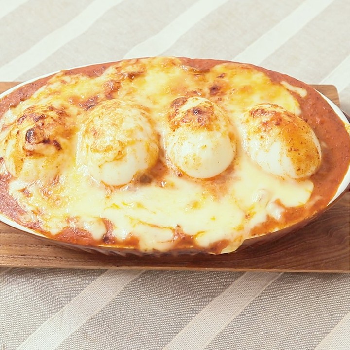 ③『10分で作れる 丸ごとゆで卵のミートドリア』