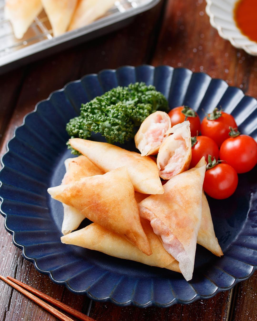 【 #はんぺんとベーコンチーズの三角春巻き 】#作り置き #冷凍保存 #お弁当 #包丁不要 #揚げない #ひな祭り #おもてなし #イベントごはん #家飲み #おつまみ