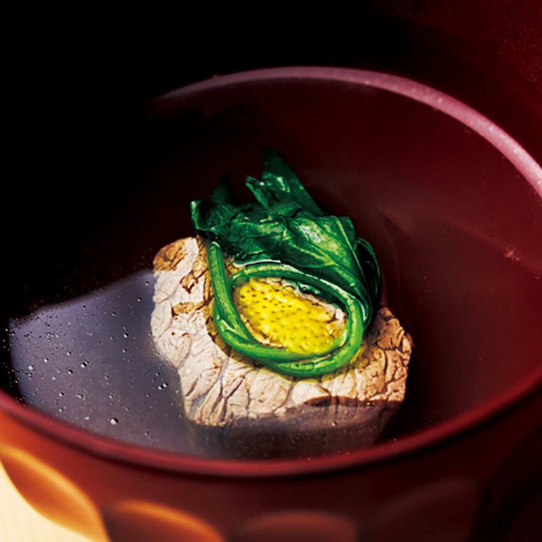 シェフのシグネチャー。出汁にあえて肉は使わず、昆布とカツオで丁寧に。その優しさを味わった後で椀種を噛み締めれば、凝縮された肉の旨みがほとばしる