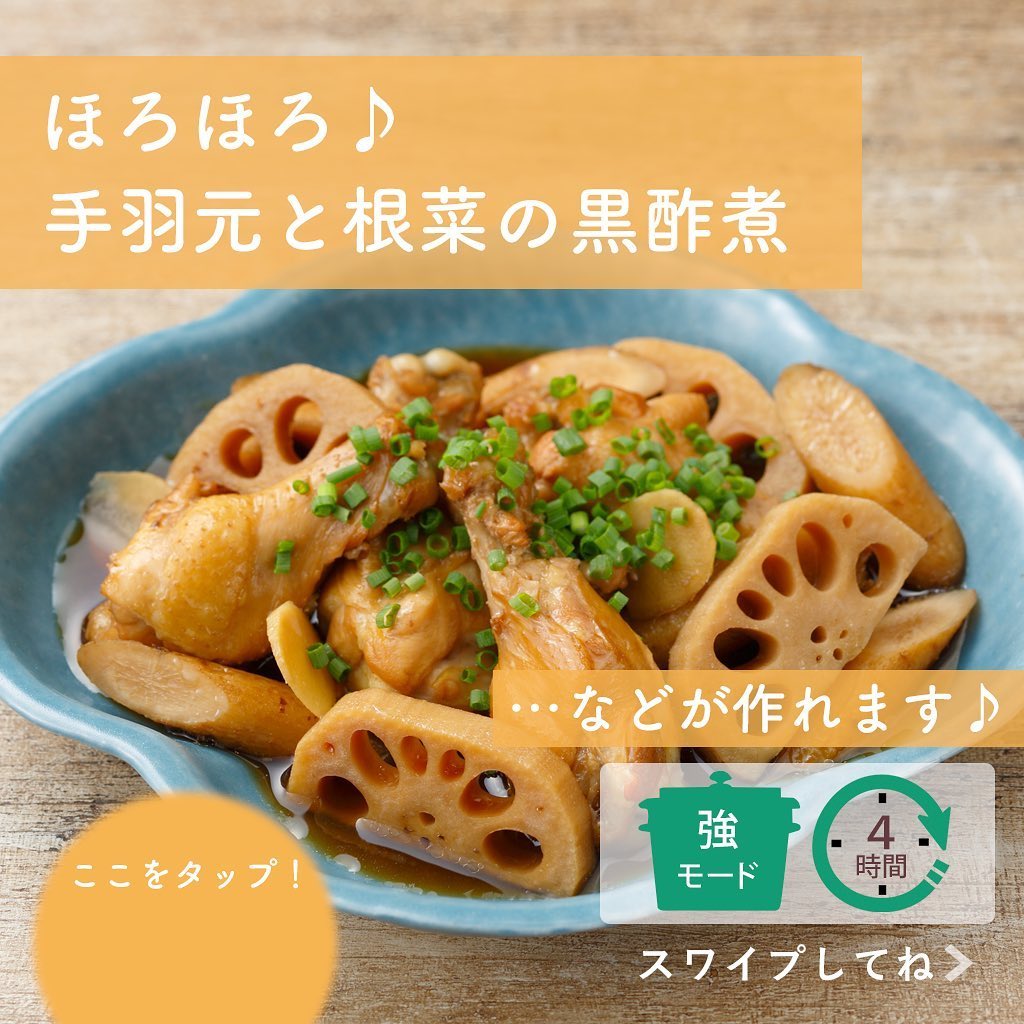 #手羽元と根菜の黒酢煮