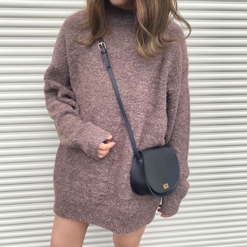 GU MENローゲージブークレセーターコーデをPick up!ブークレのクルンとした素材感が可愛くて、メンズセーターながらCUTEに着こなせるアイテム✨ざっくり大きめフォルムをチョイスした、ニットワンピ風が絶妙です👌シンプルなシルエットで、袖はちょっと長めなのがまたいい感じ😘