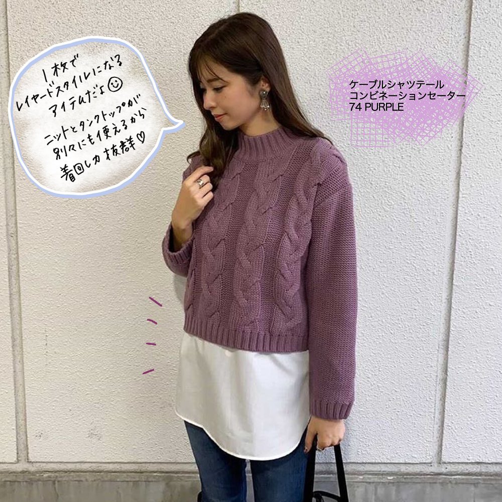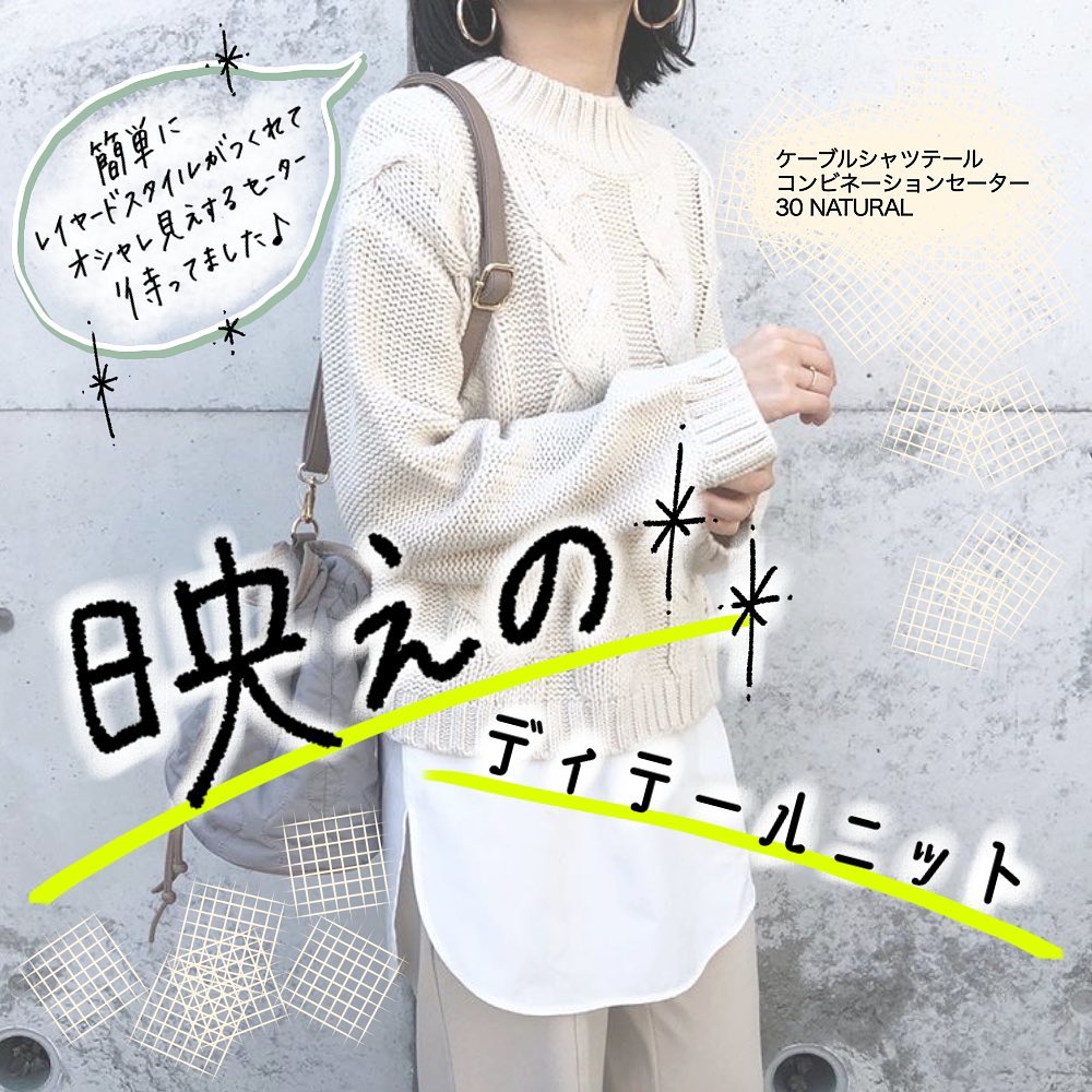 やっぱりケーブル編みのディテールが可愛い😍派手すぎず、ナチュラルなアクセントがとってもお洒落👍重ね着の工夫が簡単にできるアイテムで✨冬の着こなしが、益々広がりますね👌組み合わせは思いのまま😘イチオシのデザインセーター🙌是非、チェックしてみてくださいね💁♀️💕