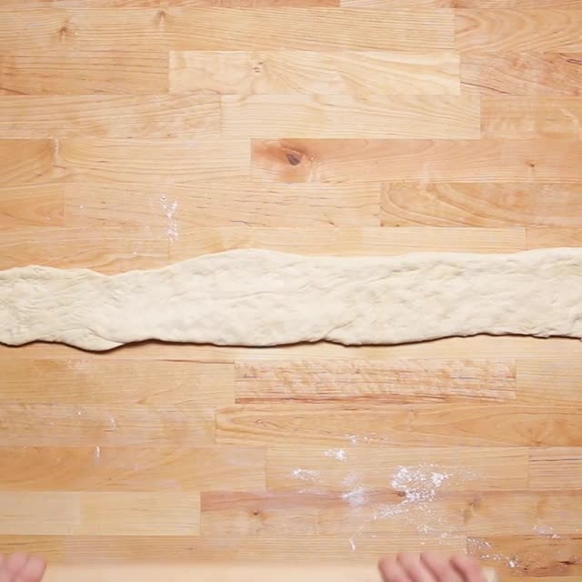 5.手や麺棒で生地を約75cmx10cmになるように伸ばす。