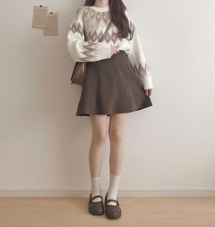 毎冬、注目のフェアアイルセーター✨特徴のある編み柄が、とっても可愛いですね🥰ホワイトベースの、ブラウンとベージュの組み合わせがGOODです👍フェミニンな着こなしも、シンプルな大人っぽコーデにも使えるセーターです👌