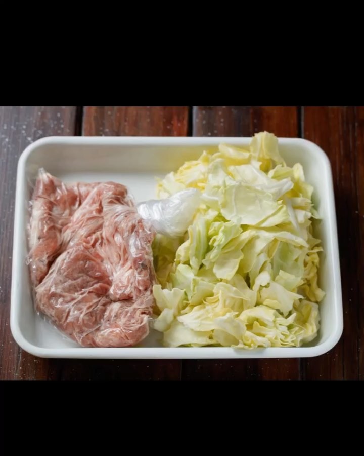 【 #豚こまキャベツの塩だれ蒸し 】#重ね蒸し #包丁不要 #放置でOK #糖質OFF