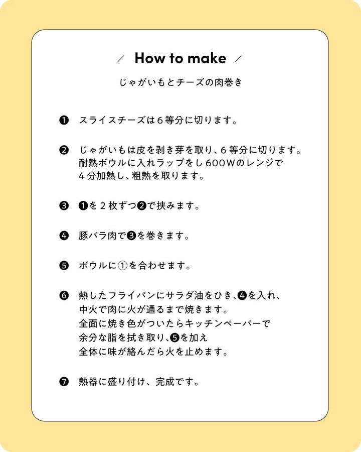 ◆本日のレシピは… 『じゃがいもとチーズの肉巻き』