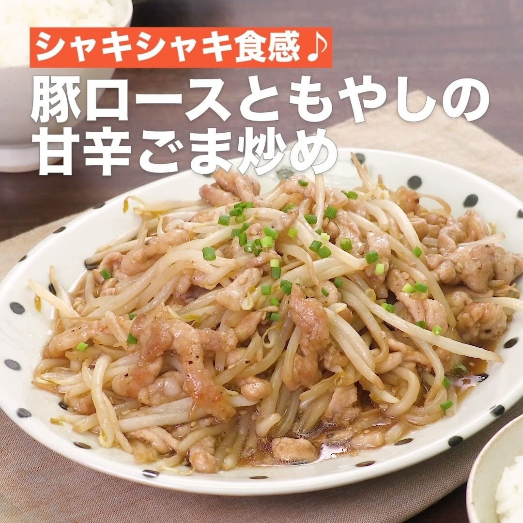①<シャキシャキ食感♪豚ロースともやしの甘辛ごま炒め>
