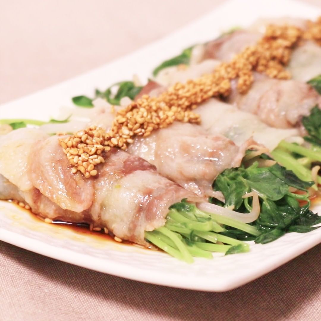 ①『レンジで!もやしと豆苗の豚巻きレンジ蒸し』