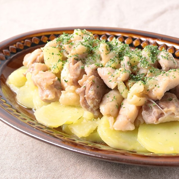 ②『レンジで簡単 じゃがいもと鶏肉の塩にんにく蒸し』