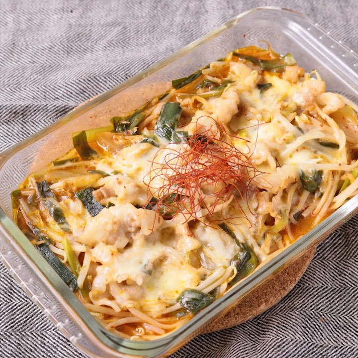 ③『レンジで簡単に 豚キムチーズ』