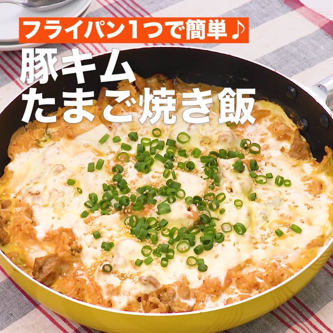 豚キムチのやみつき焼き飯レシピをご紹介します!ごはんを炒めたフライパンに卵液を流し入れてそのまま食卓に出せるので、簡単なだけでなく見た目のインパクトもあるのが嬉しいポイントです♪