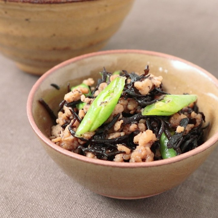 あると便利な常備菜、鶏そぼろのひじき煮のレシピの紹介です。鶏肉の旨味がひじきに染み込んだ、素朴な味わいです。ご飯にのせて丼にしたり、豆腐と組み合わせてもおすすめです。お家にある調味料で簡単に作れるので、ぜひ作ってみてください。