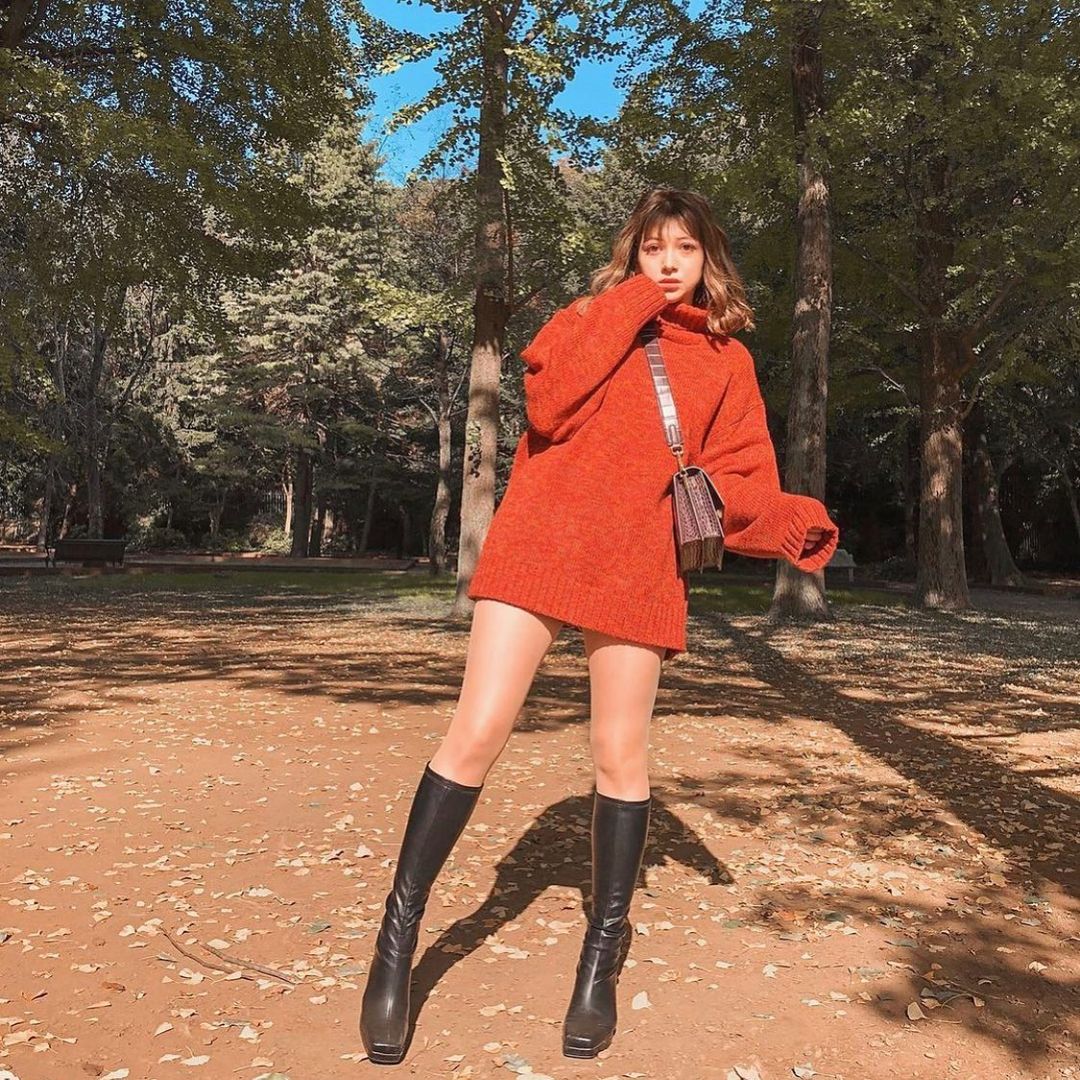 GU MENローゲージタートルネックセーターコーデをPick up!😘大きめの編み目が可愛くて、たっぷりシルエットをチョイスしたら、ニットワンピみたいに着こなせる、メンズセーター👌ブーツで合わせたスタイリングが、とっても可愛いですね🥰タートルネックが絶妙で、袖感も今年らしく、ぽってりと着こなしたらGOOD🙌