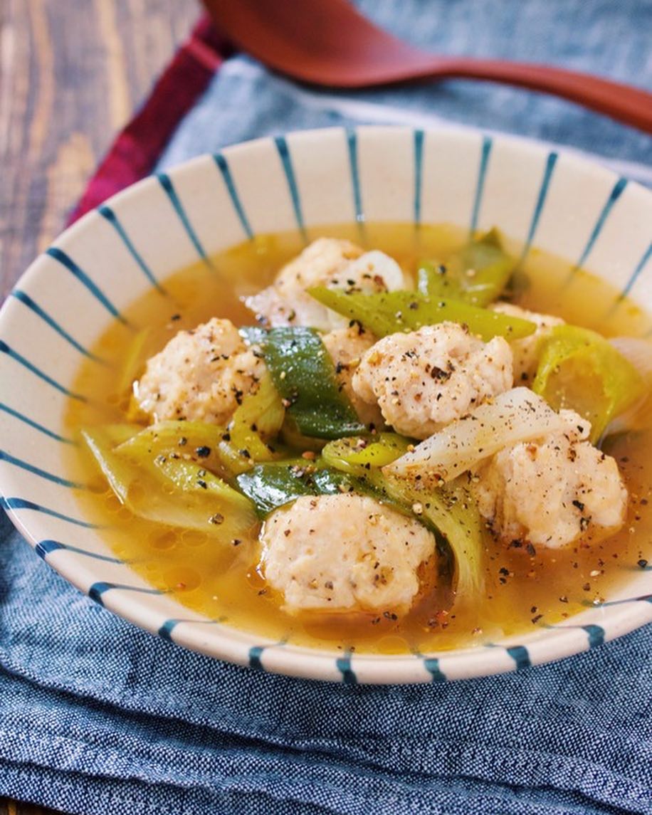 【 #たっぷりネギと鶏団子のうま塩スープ 】#風邪予防 #おかずスープ #スープ