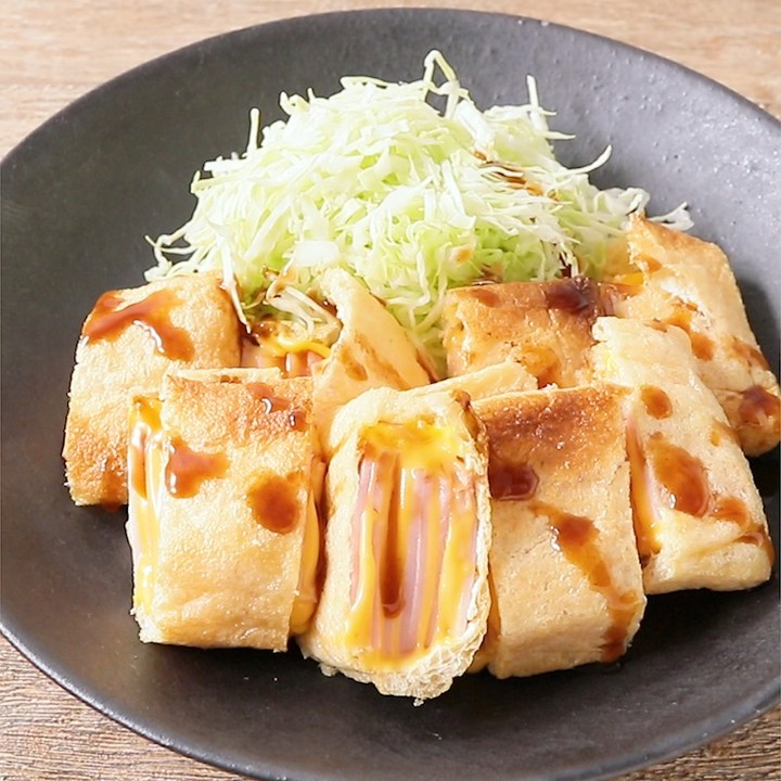 今晩のおかずに、ハムカツ風油揚げはいかがでしょうか。油揚げにハムとチーズを、挟んで焼くだけで簡単に作れるので、忙しい時や、あと一品欲しい時にぴったりですよ。お酒のおつまみにも合うので、ぜひお試しくださいね。