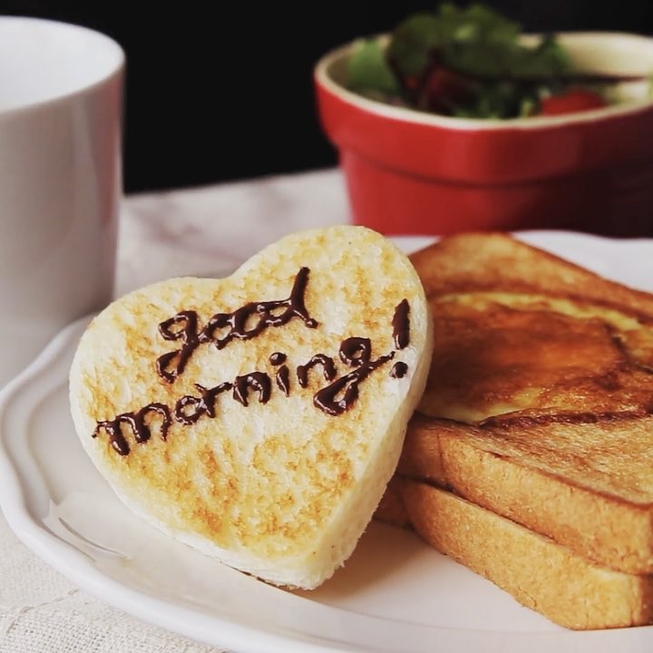 ※くり抜いて余った食パンは軽くトーストし、チョコペンで文字を書いて添えると可愛いです!⠀