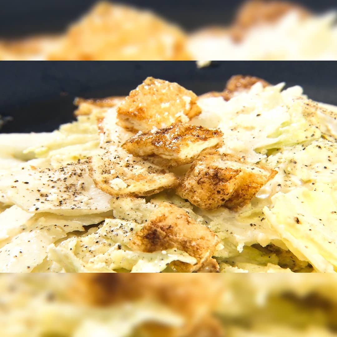 ⑥白菜にドレッシングを和え、油揚げをトッピングし黒コショウをふりかければ完成!