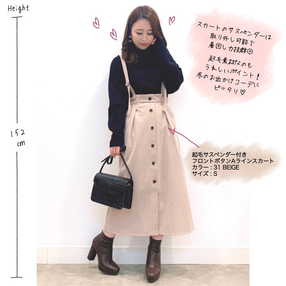 ☑︎起毛サスペンダー付きフロントボタンAラインスカートQ