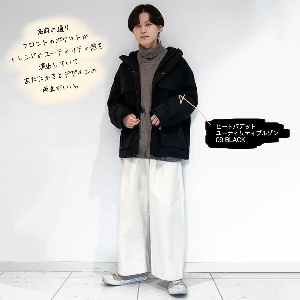 #ヒートパデットユーティリティブルゾン #ヒートパデットブルゾン #ローゲージセーター #ヒートパデットコンビネーションブルゾン #冬コーデ