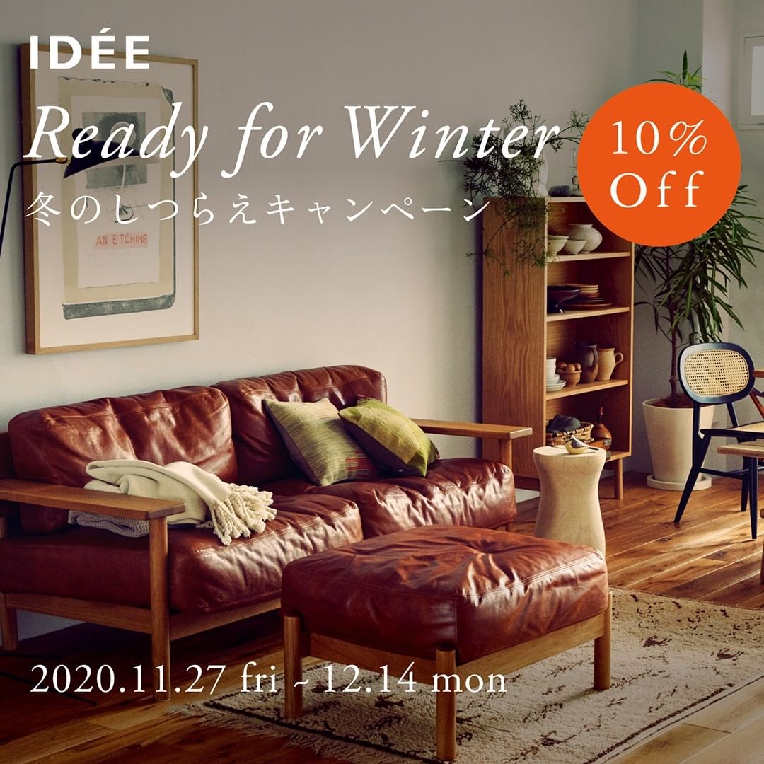 イデーショップ オンライン・直営店では、本日から12月14日(月)まで家具・照明・インテリアテキスタイルの10%OFFキャンペーンを実施します。新しい年に向けた準備や冬の模様替えに、ぜひご利用ください。