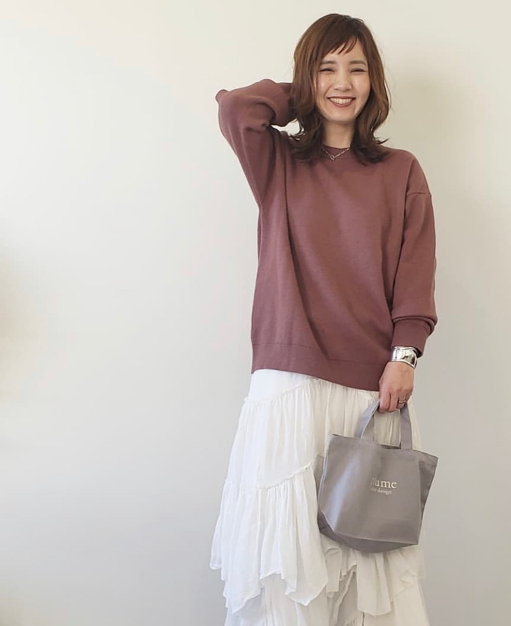 フェミニンなスカートと合わせた着こなしが、可愛いです🥰メンズライクになりすぎない、絶妙さがGOOD👍しっとりとした着心地で、とにかく暖かいから、デイリーに可愛く着こなしたら気分も上々ですね🙌是非、チェックしてみてくださいね💁‍♀️💕